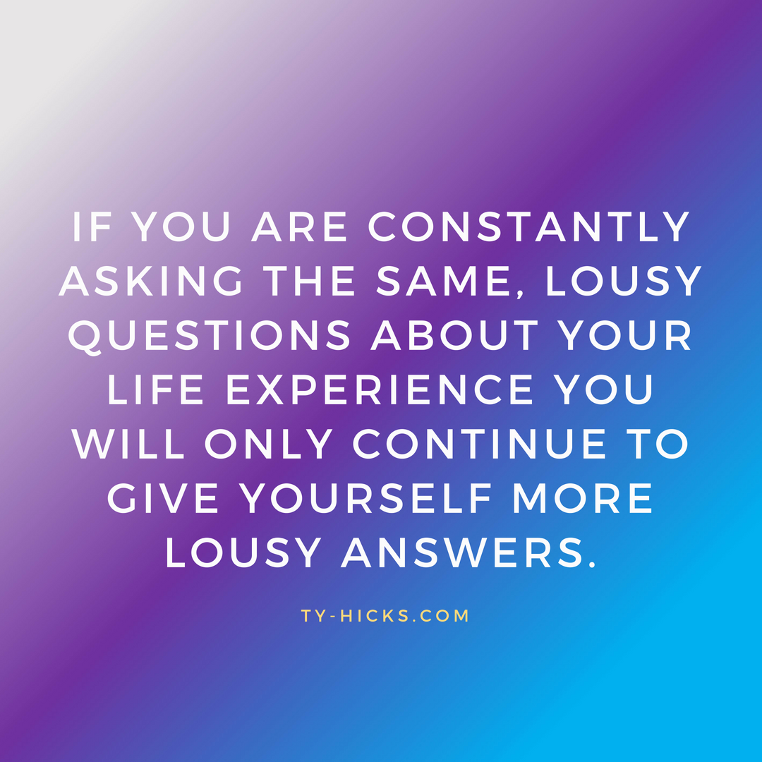 Their importance cannot be understated, and unless you learn how to consciously ask questions that will serve you, your mind will default to asking plenty of ones that don't.
