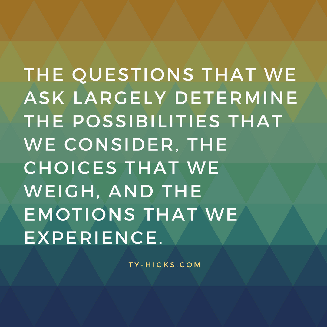 No matter what question you ask, the mind will generate an answer. The questions that we ask largely determine the possibilities that we consider, the choices that we weigh, and the emotions that we experience.
