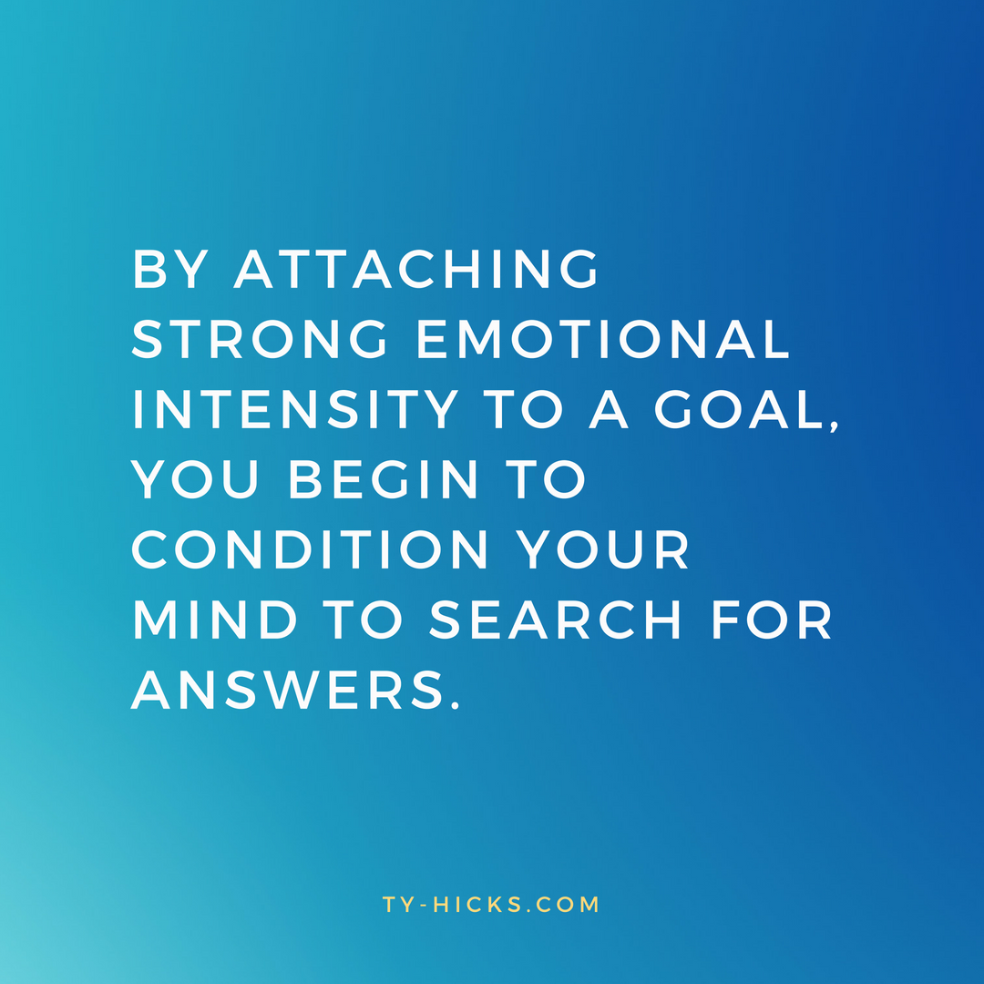 Once you have gotten clear on what you really want, you begin to enlist the help of not only your conscious mind but your unconscious mind as well. By attaching a goal to strong emotional intensity, you begin to condition your mind to search for answers. The trick is to not lose your definiteness of purpose in the face of adversity.